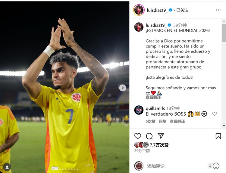 迪亚斯社媒晒出比赛相片,并写说念:“咱们晋级2026年寰球杯!感谢天主让我已毕这个梦思。这是一段漫长而充满接力与奉献的经过,能成为这支伟大球队的一员,我深感侥幸。这份振奋属于所有这个词东说念主!